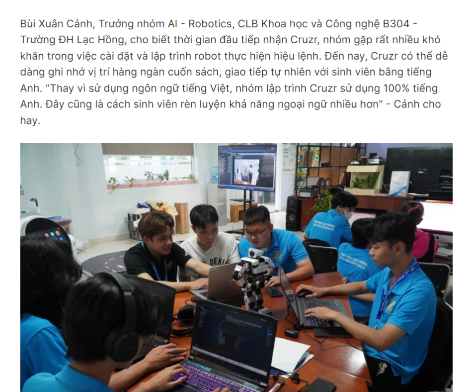 đã dẫn dắt thành công đội ngũ AI Robotic gồm 10 thành viên trong LHU để đạt được nhiều thành tích xuất sắc. Áp dụng các phương pháp quản lý hiệu quả như Quản lý theo mục tiêu (Management by Objectives) Quản lý theo kết quả (Management by Results) Quản lý theo dự án (Management by Projects) Tôi đã tạo dựng môi trường làm việc khuyến khích sự sáng tạo, đổi mới và hợp tác, từ đó thúc đẩy hiệu quả công việc và tinh thần của đội ngũ..